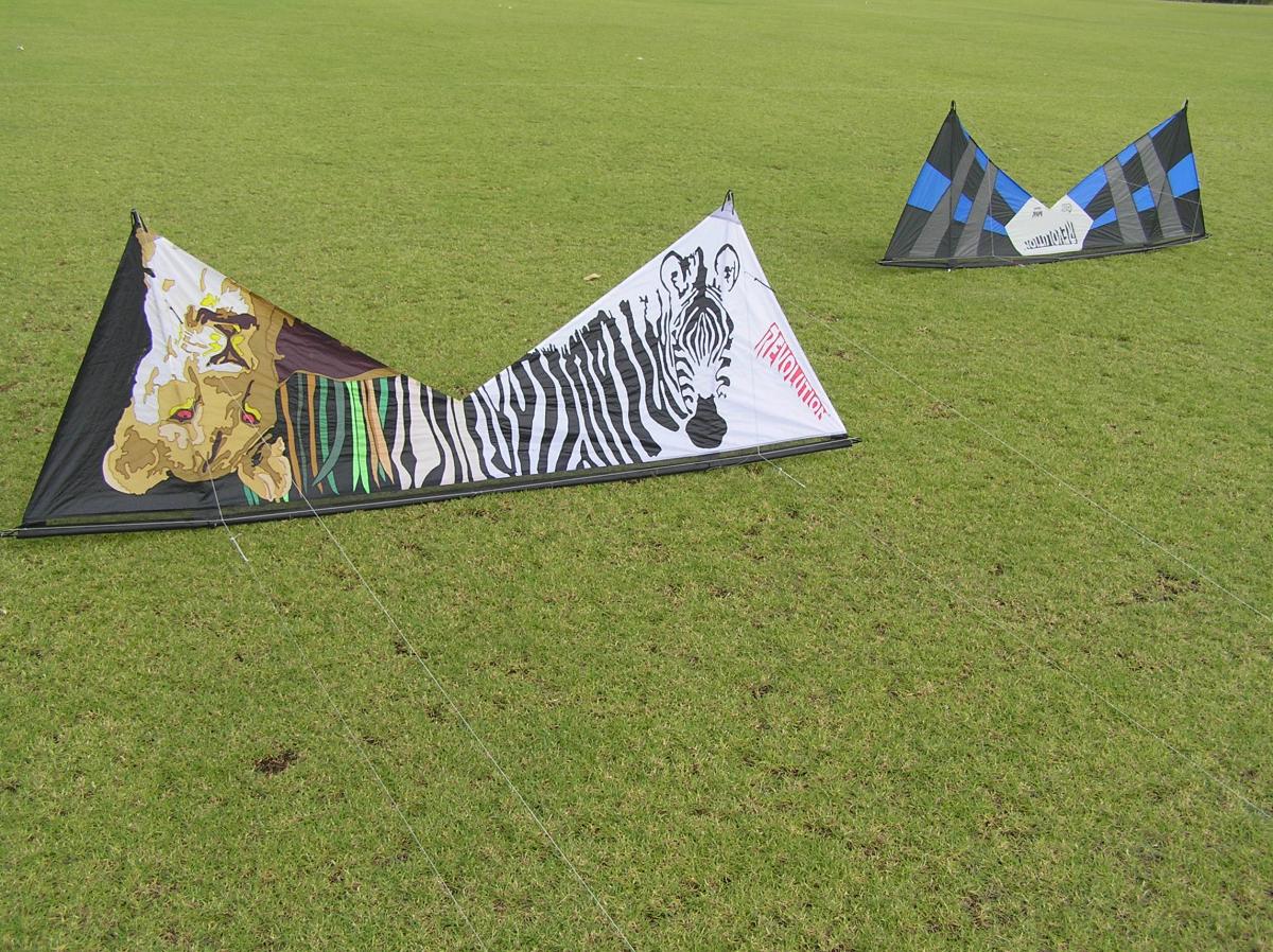 MGower set up His Sizzle and His Lion/Zebra Masterpiece. Two Brilliant Looking and Flying Kites.