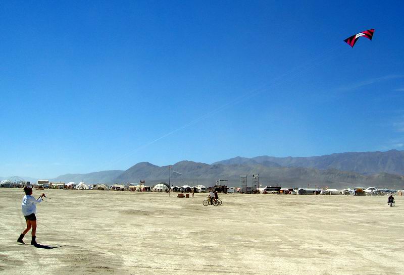 BurningMan is NOT a kiting festival, but you will find a few kiters attempting to fight the elements and do their thing. This pic is of me and my first Rev. What an experience!