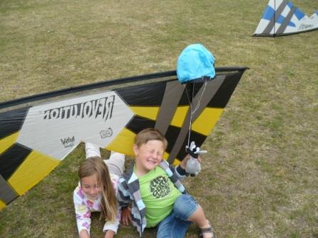 Simply a stick shoved in the elastics and a teddy/parachute combo hung off it. Needless to say, you need some wind to launch!