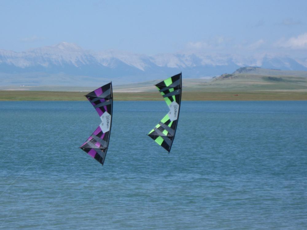 Paul and Candace over the lake and in front of the Rockie Mountains.