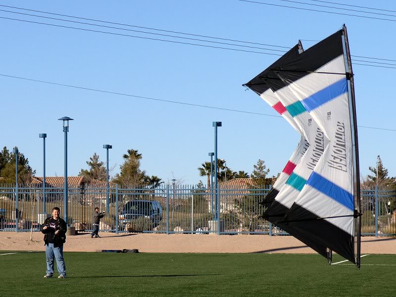 Me flying my custom 3 stack of Rev II's. Lolly put this stack together for me. I have two custom Rev II stacks, this one and one that looks just like it but all three kites are vented. Rev II stacks are awesome when the winds are up!