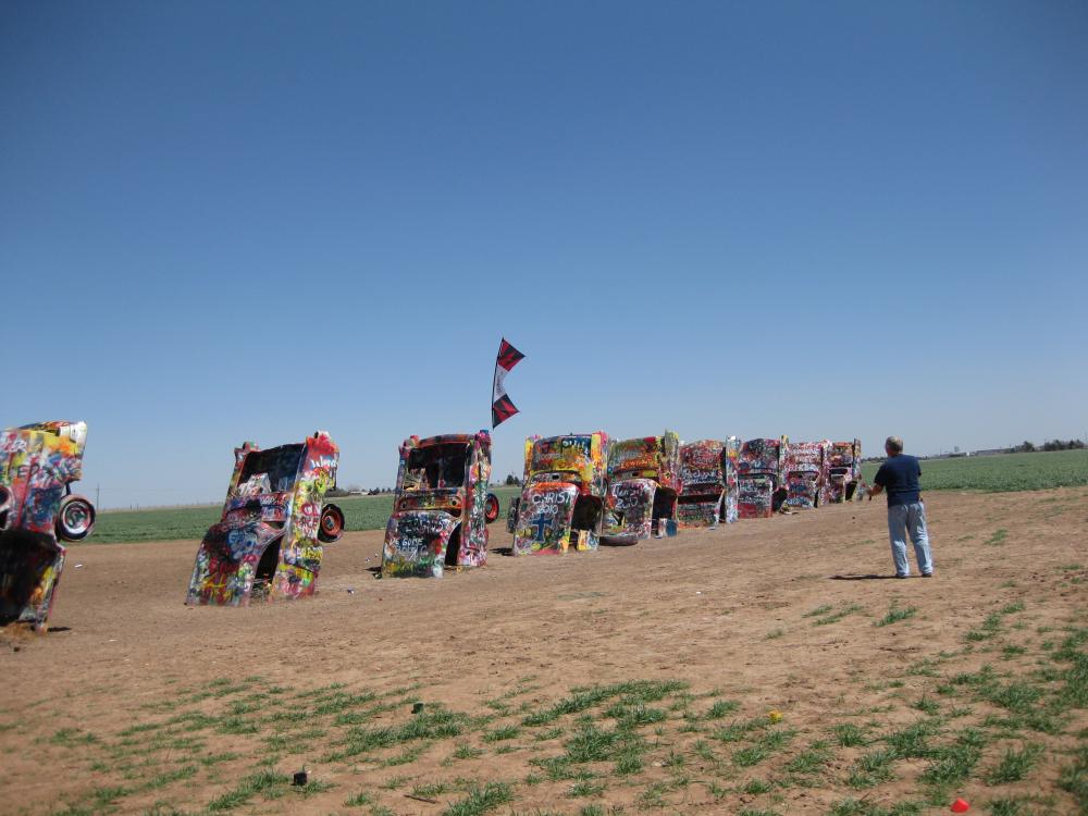 Just couldn't resist stopping to fly with the cars at Cadillac Ranch.