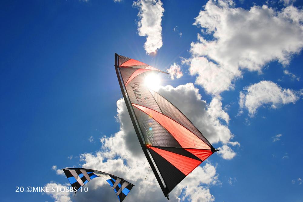 Paul's son Joe flys the red one, but for this photo Paul was flying with my kite in the background.