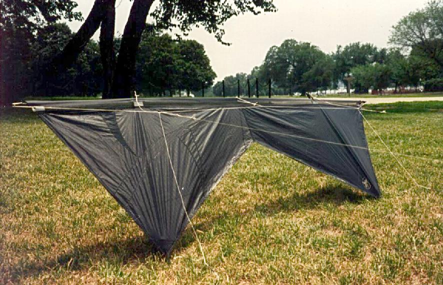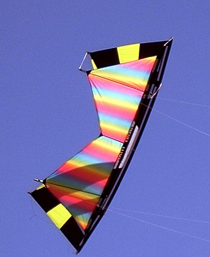 Here's a solid black rev II that I did in my standard sail pattern back in, uh, '94 I think. The kite was built of icarex with the bias oriented differently on each panel so it would light up as it moved around in the sun. I love your Bs done this way. Exceedingly cool.