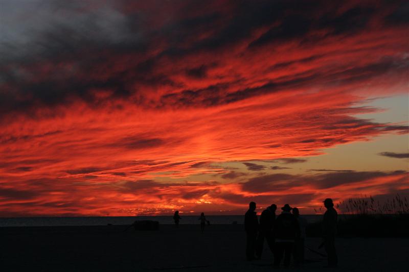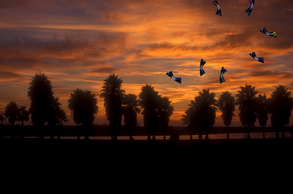 Wow, that is a fantastic sunset picture, love the colour and the kites flying in flaming red in the background. Good picture.