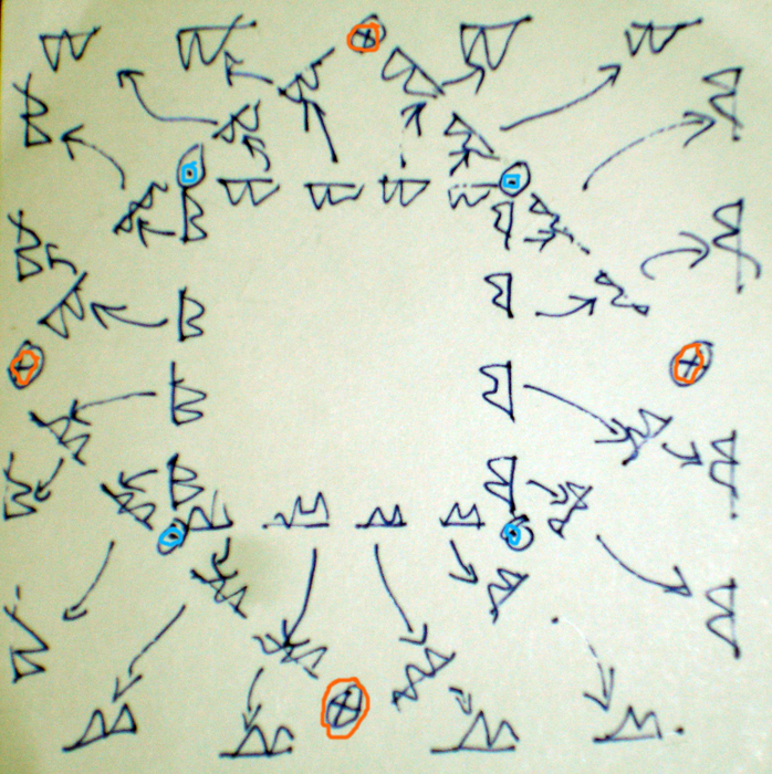 Felix Posted December 3, 2010 Author Report Share Posted December 3, 2010 (edited) I like it!!!! I have now entered your ideas into my table of shapes and moves. <snip> Starting from the tight square moving to the diamond with the axis being the corners of the original square offers the possibility of repeating the transition round the tips of the diamond back to an expanded square and thereafter a further expanded diamond. This would be a stepped burst with clearly recognisable steps. Doing a 180 at the outer point and stepping back in could be interesting. <grins> Felix Edit Image added... Edit Just think about doing something similar with concentric rings in the mega-team <grins> Edited December 3, 2010 by Felix Mottram Quote Link to comment Share on other sites More sharing options...