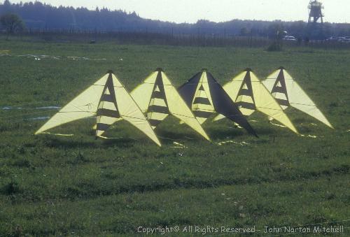 Mike Posted August 13, 2007 Author Report Share Posted August 13, 2007 This past weekend, I was flying at an airshow and had a good chance to really try out the stack. According the NOAA weather page, which gives a history of wind speeds for the past 3 days, I was flying in winds between 5-7 mph on Saturday and 7-9 on Sunday with a brief period of 10 gusting to 17mph. The stack was such a ton of fun. I love the stack in 5-7 mph. It files smooth and graceful and was a great eye-catcher for the crowds and drew lots of comments. I was able to do all the usual Rev moves: dive stops, upside down slides, reverse flight, even reverse circles, landing on a post, threading the needle thru someone flying a b-series, lock the leading edge of my front kite with the b-series, etc. I didn't do any axels, but I've never learned to axle even a single Rev. Something I've gotta practice one of these days. While the stack has only a very mild pull in light winds, in the brief period of heavy wind, it had a strong controllable pull. In the heavier winds if I flew slow and stayed out of the power zone, my arms were relaxed. If I flew fast, I could lean way back while flying the kite--which looks kinda cool. For reference, I weigh 120 lbs. I enjoyed flying these kites sooo much this weekend, I wanted to share. Here's a couple more photos: Quote Link to comment Share on other sites More sharing options...